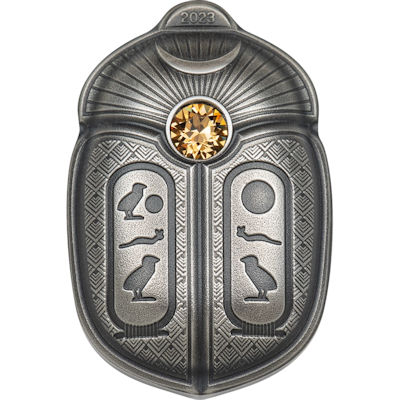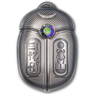 Im Laufe der Jahrhunderte wurden Skarabäen als Symbol für Reichtum, als Währung, Modeaccessoire und auch als künstlerische Ausdrucksform verwendet. Dank der verbesserten smartminting®-Technologie ist dies ein numismatisches Kunstwerk in einem 1 oz silbernen Ultrahochrelief mit integriertem Kristall von Swarovski. Es ist mit zwei Namen von Tutanchamun im Hieroglyphenstil verziert, seinem eigenen individuellen Namen und seinem Titel als Pharao, der auch auf seinem Thron gefunden wurde, als er vor 100 Jahren entdeckt wurde. Wenn Sie dauerhaften Schutz oder einfach nur ein schönes, bedeutungsvolles Geschenk wünschen. Diese geformte Skarabäus-Käfer-Münze wird beides sein. |