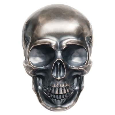 Diese Ausgabe ist eine Besonderheit für sich. Ein Totenkopf gefertigt aus 1/2 Kilogramm Feinsilber in der Reinheit 999. Durch die rückseitige Prägung handelt es sich um eine Münze und gesetzliches Zahlungsmittel in Palau mit einem Nennwert von 25 Dollar. Die Auslieferung erfolgt im Original-Etui mit Umverpackung und Echtheitszertifikat. Die Auflage beträgt lediglich 555 Stück weltweit. |