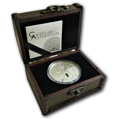 Technische Daten: Ausgabeland: Palau Prägeanstalt: Palau Ausgabejahr: 2016 Nennwert: 5 USD Material: Silber Gewicht: 31,10300g Durchmesser: 38,61 mm Auflage: 1.750 Stück Prägequalität: Antik Finish Verpackung: Im Original-Etui mit Echtheitszertifikat |