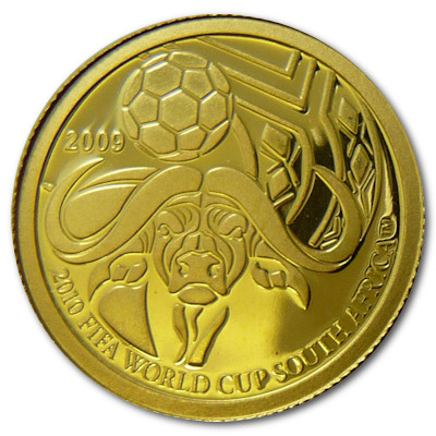 Anlässlich der Fussballweltmeisterschaft in Südafrika im Jahr 2010 wurde diese Gedenkmünze von Palau mit einem Nennwert von 1 Dollar und einem Feingewicht von 0,5 Gramm Gold verausgabt. Die Auflage beträgt lediglich 15.000 Stück weltweit und die Auslieferung erfolgt gekapselt. |