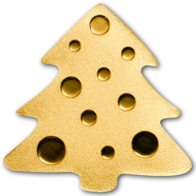 Weihnachten steht vor der Tür und passend dazu haben wir hier einen Weihnachtsbaum als Godmünze in Formprägung. Die Ausgabe setzt die geformten Goldmünzen aus Palau fort. Die Goldmünze besteht aus 9999er Feingold und hat einen Nennwert von 1 Dollar. Die Ausgabe ist auf nur 15.000 Stück weltweit streng limitiert. |