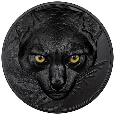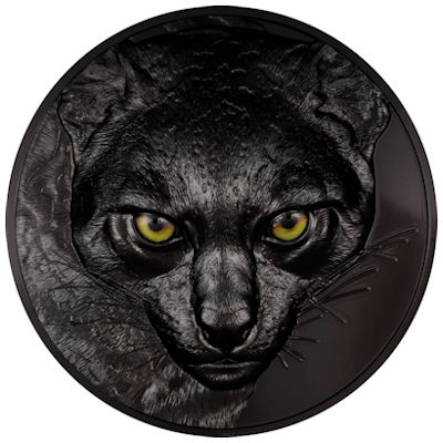 Achtung! Sie werden beobachtet. Diese erste Ausgabe der neuen Serie -Hunters by Night- zeigt eine erstaunlich realistische Vorderansicht des Gesichts eines Black Panther. Der besondere Effekt wird durch das faszinierende Obsidianschwarz-Proof-Finish erzeugt. Schauen Sie sich auch die Nennwertseite an. Das Mondlicht lässt Sie den kristallklaren Sternenhimmel bestaunen, der die perfekte Umgebung für den Jäger ist, um seine Jagd zu beginnen. Es handelt sich hier um die 1 Kilogramm Ausgabe die auf nur 99 Stück weltweit streng limitiert ist. Die Ausgabe ist beim Hersteller bereits komplett ausverkauft! |