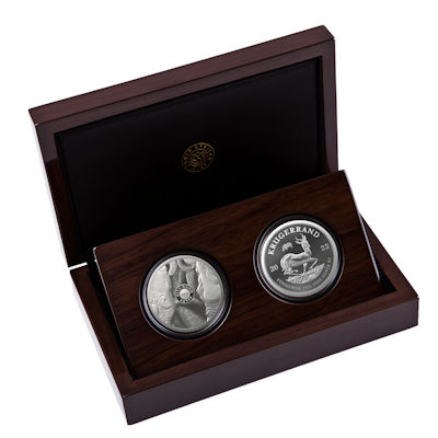 <<< Südafrika - 10 Rand Big Five II Rhino / Krügerrand 2022 - 2*1 Oz Silber Proof Set | |