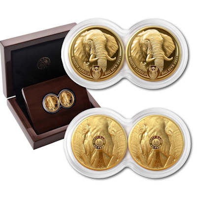 Südafrika - 50 Rand Big Five II Elefant Krügerrand Set - 2*1 Oz Gold PP | ||