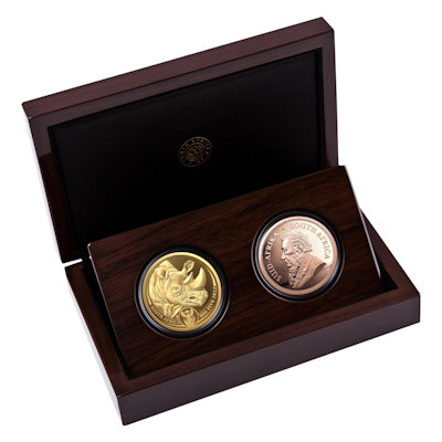 Südafrika - 50 Rand Big Five II Rhino Krügerrand Set - 2*1 Oz Gold PP | ||