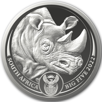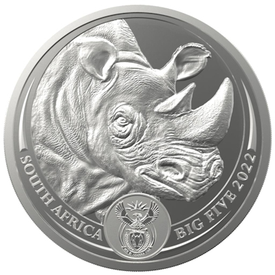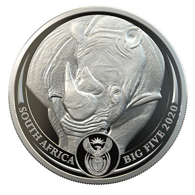 Südafrika - 5 Rand Big Five Rhino 2020 - 1 Oz Silber | ||