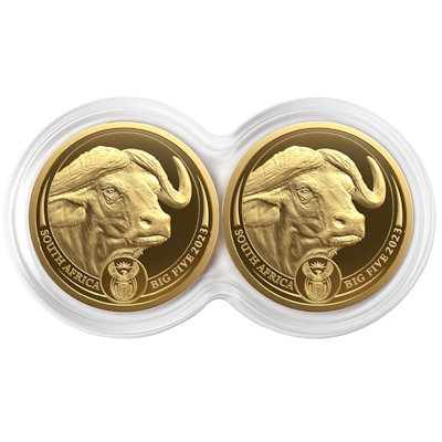 Südafrika - 2*50 Rand Big Five II Büffel Doppelkapsel 2023 - 2*1/4 Oz Gold | ||