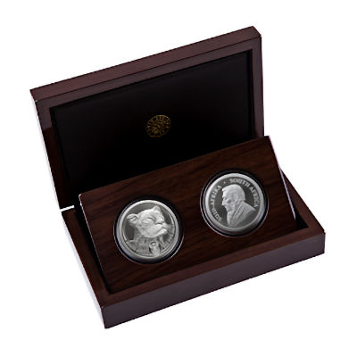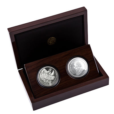 Südafrika - 6 Rand Big Five Löwe / Krügerrand 2019 - 2*1 Oz Silber Proof Set | ||
