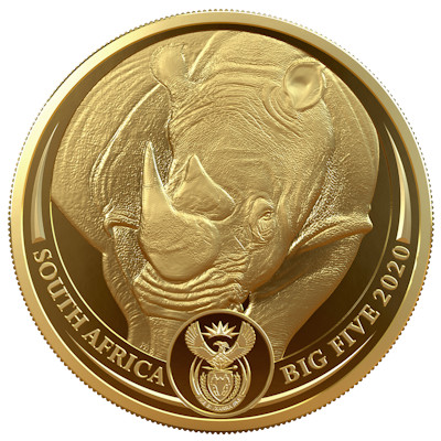 Südafrika - 50 Rand Big Five Rhino 2020 - 1 Oz Gold PP | ||