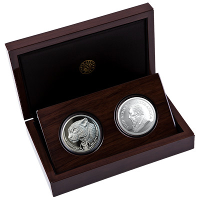 Südafrika - 6 Rand Big Five Leopard / Krügerrand 2020 - 2*1 Oz Silber Proof Set | ||