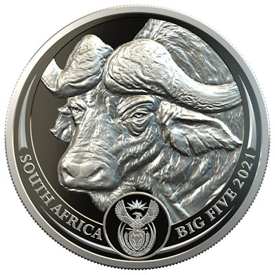 Südafrika - 5 Rand Big Five Buffalo/Büffel 2021 - 1 Oz Silber | ||