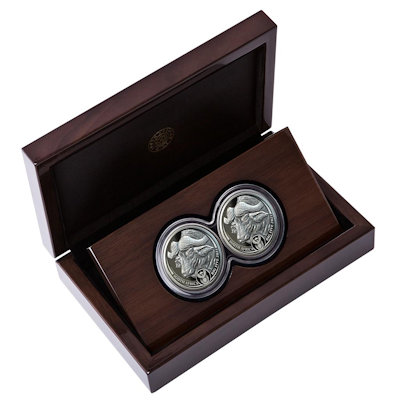 Südafrika - 10 Rand Big Five Büffel 2021 - 2*1 Oz Silber Proof Set | ||