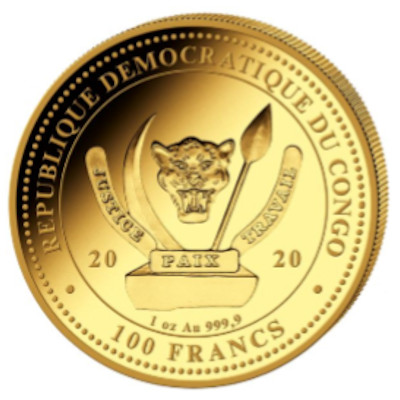 Technische Daten: Ausgabeland: Kongo Prägeanstalt: Ausgabejahr: 2020 Nennwert: 100 Francs Material: Gold Gewicht: 0,50000g Durchmesser: 11,00 mm Auflage: 2.000 Stück Prägequalität: Polierte Platte Verpackung: Einzeln gekapselt |