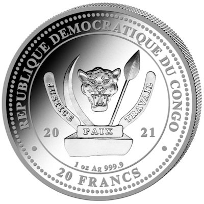Technische Daten: Ausgabeland: Kongo Prägeanstalt: Ausgabejahr: 2021 Nennwert: 20 Francs Material: Silber Gewicht: 31,10300g Durchmesser: 38,60 mm Auflage: 30.000 Stück Prägequalität: Stempelglanz Verpackung: Einzeln gekapselt |