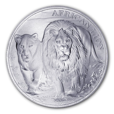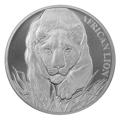 Vom Ausgabeland Tschad stammt diese beeindruckende Münze mit dem Motiv des Afrikanischen Löwen in 1 Oz Feinsilber mit der Reinheit 999/1000 und Jahrgang 2017. Die Münze ist in Stempelglanz produziert und auf lediglich 50.000 Stück weltweit limitiert. Das Motiv zeigt einen Löwen der sich anpirscht. Der Nennwert beträgt 5000 Francs. |