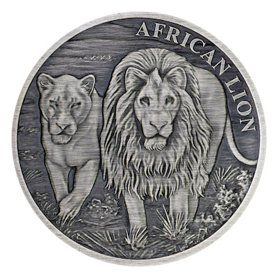 Diese Silbermünzen Serie trägt das Ausgabeland Kongo und einen Nennwert von 5.000 Francs und ist damit gesetzliches Zahlungsmittel im Ausgabeland. Das passende Motiv zeigt den afrikanischen Löwen mit einem männlichen und einem weiblichen Tier. Aus der Serie sind erschienen die Variante in Stempelglanz limitiert auf 50.000 Stück, sowie Ausgaben in Proof (1.000 Stück), vergoldet (500 Stück) und mit Antik Finish Veredelung (500 Stück). Die Münzen bestehen jeweils aus 1 Oz Feinsilber und alle Ausgaben werden mit Echtheitszertifikat ausgeliefert. Die 2017er Ausgabe trägt das Ausgabeland Tschad. |