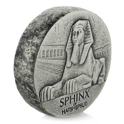 <<< Tschad - 3000 Francs Sphinx of Hatshepsut 2019 - 5 Oz Silber