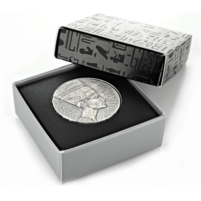 Diese beeindrucken 5 Oz schwere Feinsilbermünze zeigt die Königin Nefertiti und es handelt sich um die 2. Ausgabe in 5 Oz Feinsilber der Serie Ägyptischen Relikte. Das Motiv wurde einer Original Hieroglyphe entnommen. Die Münze hat einen Nennwert von 3.000 Francs und trägt das Ausgabeland Tschad. Produziert wurde sie in höchster Prägetechnik von der Scottsdale Mint und ist auf nur 50.000 Stück weltweit streng limitiert.