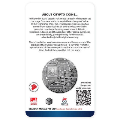 Diese 3-teilige 1 Oz Silbermünzen Serie widmet sich den 3 bekanntesten Crypto Währungen und zeigt die Motive zu Bitcoin, Ethereum und Litecoin. Die Münzen werden vom Tschad verausgabt mit einem Nennwert von 5000 Francs und sind aus 999er Feinsilber geprägt. Die Auflage pro Motiv beträgt lediglich 25.000 Stück weltweit!