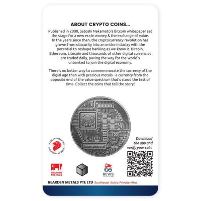 Es handelt sich hier um die Ausgabe mit dem Motiv Bitcoin aus der Crypto Silbermünzenserie in Antik Finish Veredelung und limitiert auf nur 2.500 Stück weltweit!
