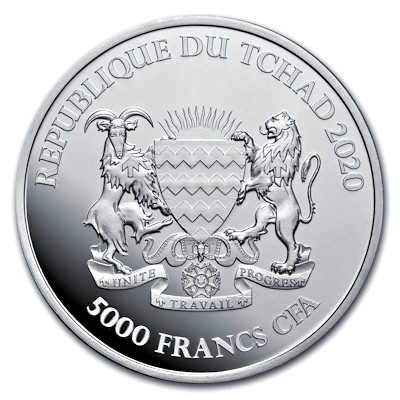 Technische Daten: Ausgabeland: Tschad Prägeanstalt: Diverse Ausgabejahr: 2020 Nennwert: 5000 Francs Material: Silber Gewicht: 31,10300g Durchmesser: 39,00 mm Auflage: 10.000 Stück Prägequalität: Stempelglanz Verpackung: In Münztasche verpackt |