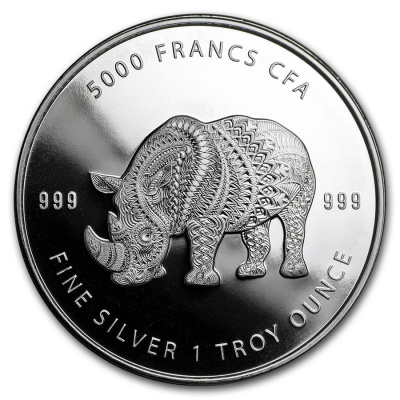 Tschad - 5000 Francs Mandala Rhino 2019 - 1 Oz Silber | ||