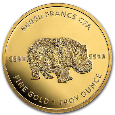 Vom Ausgabeland Tschad stammt diese Sonderausgabe mit einem Mandala Motiv des Afrikanischen Hippo in 1 Oz Feingold mit der Reinheit 9999/1000 und Jahrgang 2020. Der Nennwert beträgt 50.000 Francs. Diese Ausgabe ist auf die extrem geringe Stückzahl von nur 100 Stück!!! limitiert und damit äußerst RAR! |