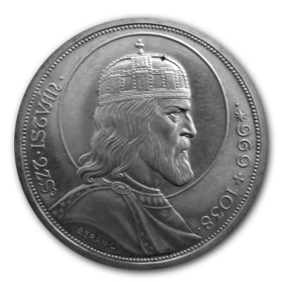 Zum 900. Todestag des Hl. Stephan wurde von Ungarn im Jahr 1938 diese Silbergedenkmünze mit einem Nennwert von 5 Pengö verausgabt. |
