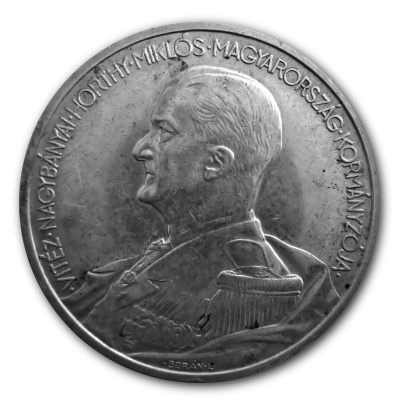 Zum 70. Geburtstag M. Horty wurde von Ungarn im Jahr 1939 diese Silbergedenkmünze mit einem Nennwert von 5 Pengö verausgabt. |