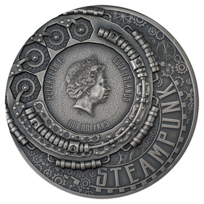 | <<< Cook Island - 100 CID Steampunk 2023 - 1 KG Silber Antik Finish Ultra High Relief | |