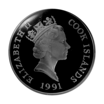 Technische Daten: Ausgabeland: Cook Islands Prägeanstalt: Ausgabejahr: 1991 Nennwert: 50 CID Material: Silber Gewicht: 17,57500g Durchmesser: 38,6 mm Dicke: 2,12 mm Auflage: 25.000 Stück Prägequalität: Polierte Platte Verpackung: Gekapselt |