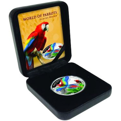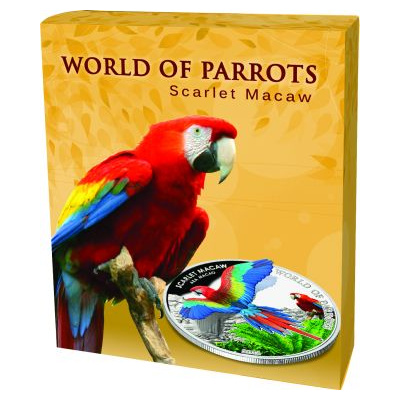 Diese wunderschöne Münze zeigt als 3D Applikation den Hellroten Ara. Die Münze besteht aus Sterlingsilber und ist in der höchsten Prägequalität Polierte Platte produziert. Die Auslieferung erfolgt im Original-Etui mit Umverpackung und nummeriertem Echtheitszertifikat. Die Auflage beträgt lediglich 2.500 Stück weltweit!