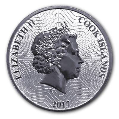 Die 2017er Ausgabe der Cook Island Bounty Anlagemünze in 1 Oz Feinsilber. Die Münze wird seit 2015 in der höchsten Reinheit 999,9/1000 Feinsilber geprägt und seit 2016 mit neuen Sicherheitsmerkmalen.