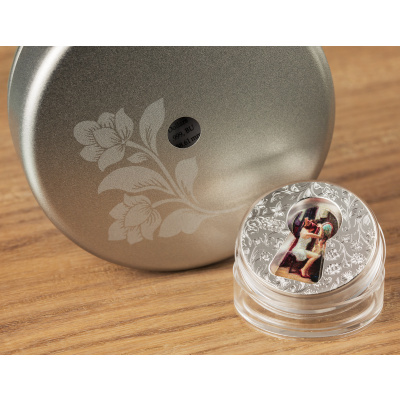 Diese ganz besondere Münze zeigt durch ein Schlüsselloch einen Ausschnitt des Gemäldes von dem amerikanischen Künstler Bryce Cameron Liston, welches er im Jahr 2008 gemalt hat. Nur mittels der besonderen smartminting©-Technologie ist so eine Münzprägung möglich. Die Münze besteht aus 2 Oz Feinsilber in der Prägequalität Stempelglanz und ist zudem coloriert. Die Ausgabe ist auf nur 777 Stück streng limitiert. Die Auslieferung erfolgt im Original-Etui mit Umverpackung und nummeriertem Echtheitszertifikat.