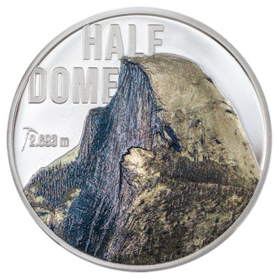 Die zweite Ausgabe der Serie Mountains zeigt den Half Dome. Weithin sichtbar erhebt sich diese steile, zerklüftete Halbkugel hoch über dem Yosemite Valley. Ursprünglich Tis-sa-ack genannt, ein indianischer Ausdruck für Cleft Rock, erlebte er viele berühmte Anstiege. Die erste bekannte Besteigung erfolgte 1875 durch George Anderson, der Löcher in den glatten Granit bohrte, um die Felswand erfolgreich zu erobern. Seitdem erreichen Wanderer den Gipfel jedes Jahr auf einem Pfad, der vom Talboden aus beginnt.