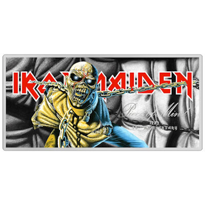 Diese wunderschöne 5g Silbernote aus 999er Feinsilber ist eine Hommage an das 40-jährige Jubiläum von Piece of Mind. Die farbenfrohe 5-Gramm-Silbernote ist ein unvergesslicher Anblick und nutzt jedes Stück ihrer Oberfläche, um dieses auffällige Design zu präsentieren. Die Auflage ist weltweit auf nur 5.000 Stück streng limitiert. |