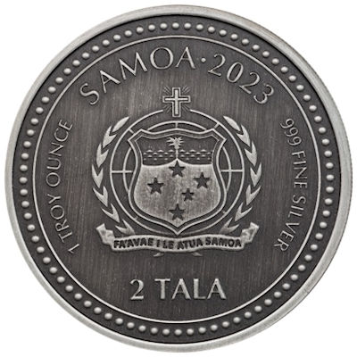 Die Münze besteht aus 1 Oz Feinsilber in der Prägequalität Stempelglanz mit Antik Finish Veredelung und ist auf nur 3.000 Stück weltweit streng limitiert. Die Auslieferung erfolgt einzeln gekapselt. Technische Daten: Ausgabeland: Samoa Prägeanstalt: Scottsdale Mint Ausgabejahr: 2023 Nennwert: 2 Tala Material: Silber Gewicht: 31,10300g Durchmesser: 39,00 mm Auflage: 3.000 Stück Prägequalität: Stempelglanz, Antik Finish Verpackung: Einzeln gekapselt |