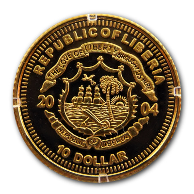 Technische Daten: Ausgabeland: Liberia Prägeanstalt: Diverse Ausgabejahr: 2004 Nennwert: 10 Dollar Material: Gold Gewicht: 1,24412g Durchmesser: 13,92 mm Auflage: 1.000 Stück Prägequalität: Polierte Platte Verpackung: Gekapselt mit Echtheitszertifikat |