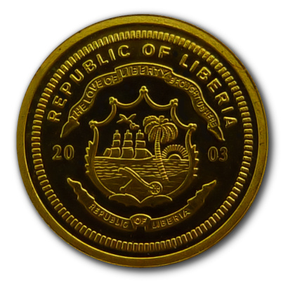 Technische Daten: Ausgabeland: Liberia Prägeanstalt: Diverse Ausgabejahr: 2003 Nennwert: 25 Dollar Material: Gold Gewicht: 0,73000g Durchmesser: 11,00 mm Auflage: 20.000 Stück Prägequalität: Polierte Platte (Proof) Verpackung: Gekapselt mit Echtheitszertifikat |