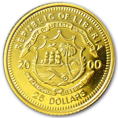 Technische Daten: Ausgabeland: Liberia Prägeanstalt: Diverse Ausgabejahr: 2000 Nennwert: 25 Dollar Material: Gold Gewicht: 0,73000g Durchmesser: 11,00 mm Auflage: 20.000 Stück Prägequalität: Polierte Platte (Proof) Verpackung: Gekapselt |