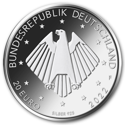 Im Oktober 2015 erschien dann erstmals eine Stempelglanz Euro Gedenkmünze mit einem Nennwert von 25 Euro in reinstem Silber 999/1000 zum Gedenken an 25 Jahre Deutsche Einheit. Ab 2016 startete dann die neue Euro Gedenkmünzen Serie der Bundesrepublik Deutschland nun mit einem Nennwert von 20 Euro und wieder aus Sterlingsilber mit einem Gewicht von 18 Gramm. Beschreibung zur Münze:
