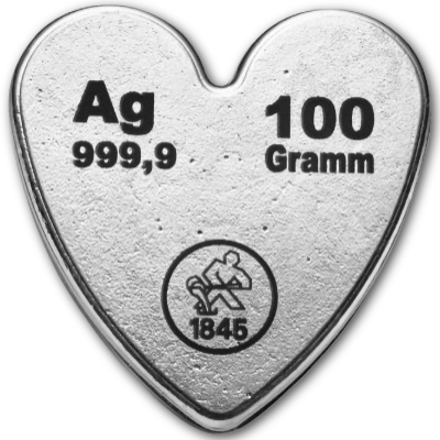 <<< Heimerle + Meule - Herzbarren Feinsilber - 100g Silber | |