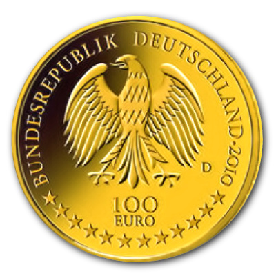 Technische Daten: Ausgabeland: Deutschland Prägeanstalt: Deutschland A, D, F, G, J Ausgabejahr: 2010 Nennwert: 100 EURO Material: Gold Gewicht: 15,55150g Durchmesser: 28,00 mm Dicke: 1,65 mm Auflage: 320.000 Stück Prägequalität: Stempelglanz Verpackung: Gekapselt, ohne Etui und Zertifikat |