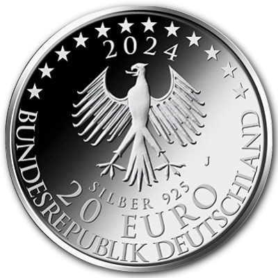 Im Oktober 2015 erschien dann erstmals eine Stempelglanz Euro Gedenkmünze mit einem Nennwert von 25 Euro in reinstem Silber 999/1000 zum Gedenken an 25 Jahre Deutsche Einheit. Ab 2016 startete dann die neue Euro Gedenkmünzen Serie der Bundesrepublik Deutschland nun mit einem Nennwert von 20 Euro und wieder aus Sterlingsilber mit einem Gewicht von 18 Gramm. Beschreibung zur Münze: