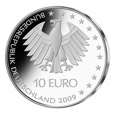 Technische Daten: Ausgabeland: Deutschland Prägeanstalt: Deutschland A, D, F, G, J Ausgabejahr: 2009 Nennwert: 10 EUR Material: Silber Gewicht: 16,65000g Durchmesser: 32,50 mm Auflage: 200.000 Stück Prägequalität: Polierte Platte Verpackung: Gekapselt |