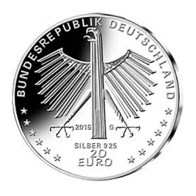 Im Oktober 2015 erschien dann erstmals eine Stempelglanz Euro Gedenkmünze mit einem Nennwert von 25 Euro in reinstem Silber 999/1000 zum Gedenken an 25 Jahre Deutsche Einheit. Ab 2016 startete dann die neue Euro Gedenkmünzen Serie der Bundesrepublik Deutschland nun mit einem Nennwert von 20 Euro und wieder aus Sterlingsilber mit einem Gewicht von 18 Gramm. Beschreibung zur Münze: