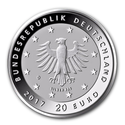 Technische Daten: Ausgabeland: Deutschland Prägeanstalt: Deutschland A, D, F, G, J Ausgabejahr: 2017 Nennwert: 20 EUR Material: Silber Gewicht: 18,00000g Durchmesser: 32,50 mm Auflage: 200.000 Stück Prägequalität: Spiegelglanz Verpackung: Gekapselt im Blister |