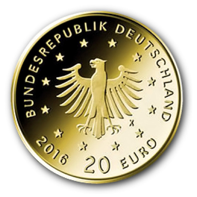 Technische Daten: Ausgabeland: Deutschland Prägeanstalt: Deutschland A, D, F, G, J Ausgabejahr: 2017 Nennwert: 20 EURO Material: Gold Gewicht: 3,88788g Durchmesser: 17,50 mm Dicke: 1,15 mm Auflage: 200.000 Stück Prägequalität: stempelglanz Verpackung: Gekapselt, mit Echtheitszertifikat |