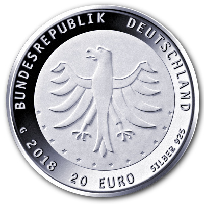 Im Oktober 2015 erschien dann erstmals eine Stempelglanz Euro Gedenkmünze mit einem Nennwert von 25 Euro in reinstem Silber 999/1000 zum Gedenken an 25 Jahre Deutsche Einheit. Ab 2016 startete dann die neue Euro Gedenkmünzen Serie der Bundesrepublik Deutschland nun mit einem Nennwert von 20 Euro und wieder aus Sterlingsilber mit einem Gewicht von 18 Gramm. Beschreibung zur Münze: