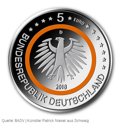 Das Bildmaterial ist Copyright (c) bei BADV, Der Entwurf der Bildseite stammt von dem Künstler Patrick Niesel aus Schwaig. Die Wertseite, die für alle Münzen der Serie verwendet wird, wurde von der Künstlerin Stefanie Radtke aus Leipzig gestaltet. Technische Daten: Ausgabeland: Deutschland Prägeanstalt: Deutschland A, D, F, G, J Ausgabejahr: 2018 Nennwert: 5*5 Euro Material: Kupfer/Nickel Durchmesser: 27,25 mm Auflage: 80.000 Stück Prägequalität: Spiegelglanz Verpackung: In Original-Box |